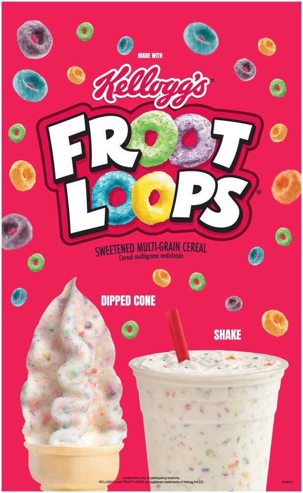 Creamy shake made with Tastee Freez Soft Serve and Froot Loops cone dip.
