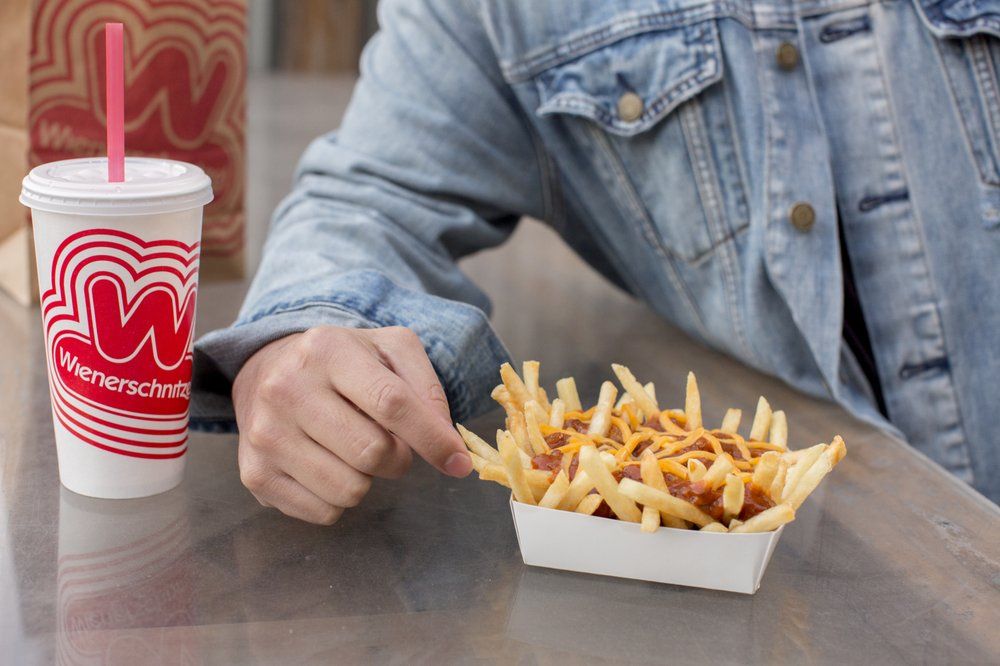 Golden brown French Fries with Wienerschnitzel's world famous Chili Sauce and shredded cheddar, wrapped in a warm 10" flour tortilla.