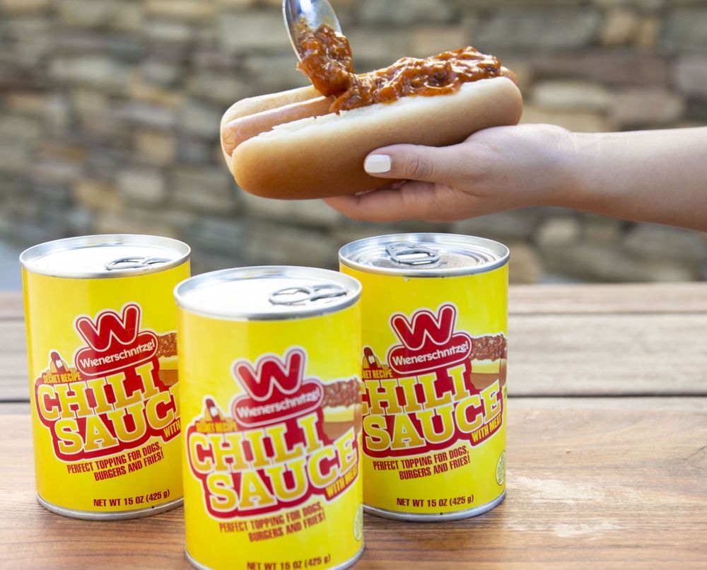 A juicy 100% USDA all-beef hamburger patty grilled to perfection, topped with Wienerschnitzel's world famous Chili Sauce made from a secret recipe and a slice of American cheese served on a toasted bun.